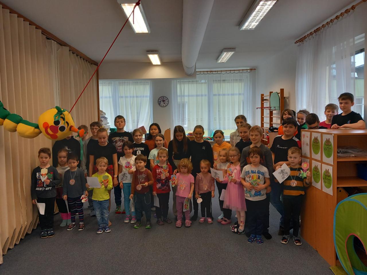 5. třída se zúčastnila projektu ,,STARŠÍ DĚTI ČTOU MLADŠÍM." Téma setkání bylo ,,Jaro." Páťáci navštívili třídu ,,Zajíčků." Zazpívali dětem písničky o jaru, zarecitovali básničky, přečetli pohádku ,,Jak Křemílek a Vochomůrka zasadili semínko," zahráli ke čtení divadlo a popovídali si s dětmi o jaru. Děti ze školky si vyrobily kytičku a pak si zahrály hru, kde si procvičily barvy. Na závěr dostaly obrázky a medaile s Křemílkem a Vochomůrkou. Medaile pro děti vyrobily Markétka a Anička.